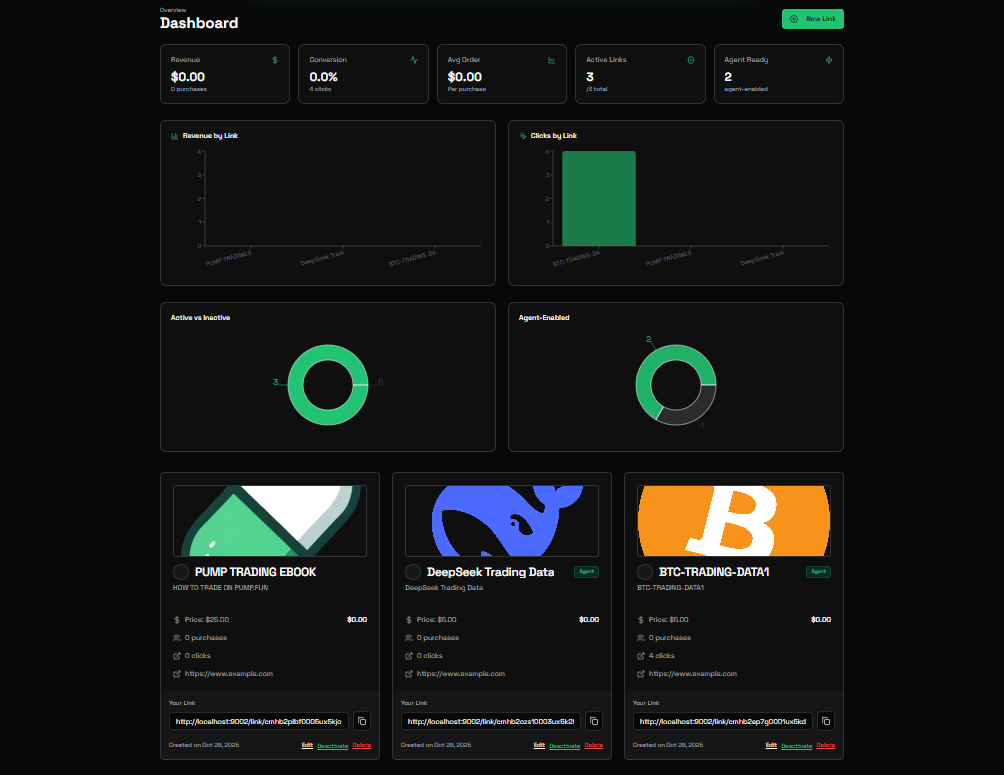 - Create links via POST https://link402.xyz/api/agent/create-linkwith yourx-agent-key.